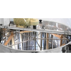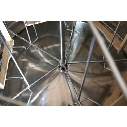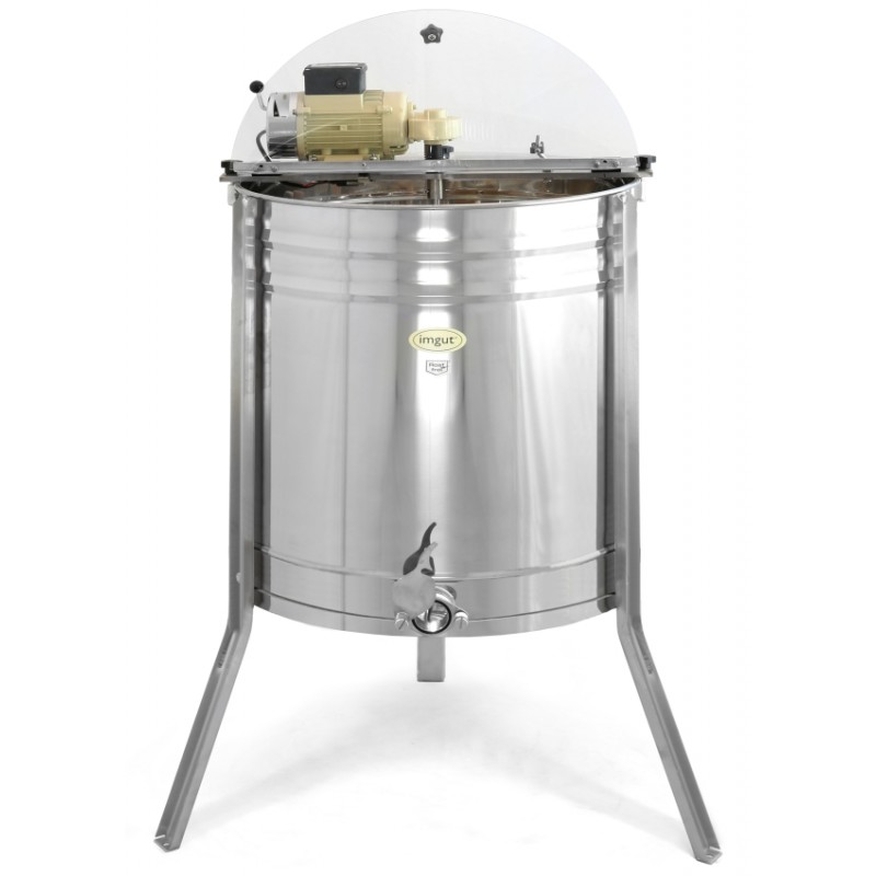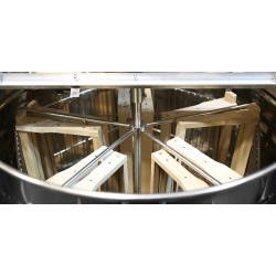 Hela slungan - kärl, korg, travers och kran - är tillverkad i rostfritt stål. Kranen är placerad i samma nivå som botten på slungan, vilket gör att all honung lätt rinner ut. Botten är dessutom lätt lutad för att underlätta tömning av honung.