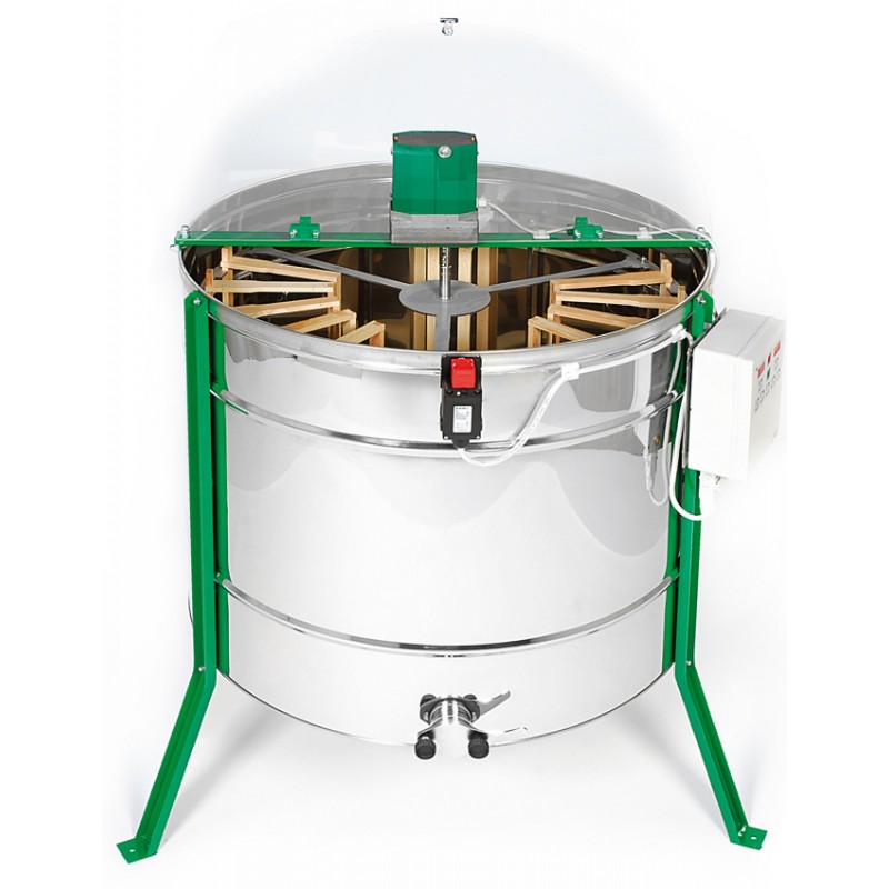 Högkapacitets radialslunga i rostfritt stål med motor och automatisk styrning. Byggd för snabb, skonsam och effektiv honungsslungning.