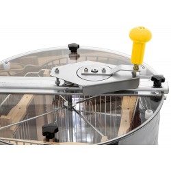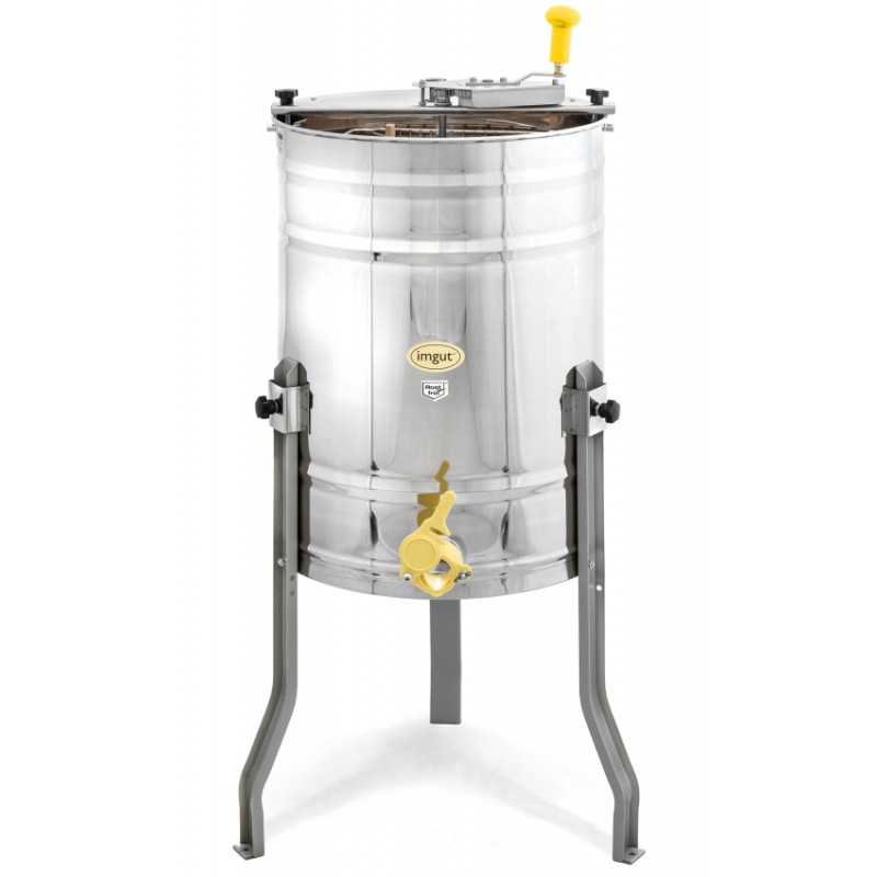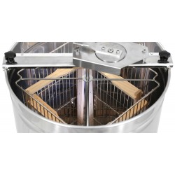 Manuell honungsslunga med plats för fyra ramar upp till 310 mm höga. Utrustad med tangentiell korg och robust övre handvev med kugghjul i stål. Stabil konstruktion med tre ben för säker användning.