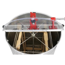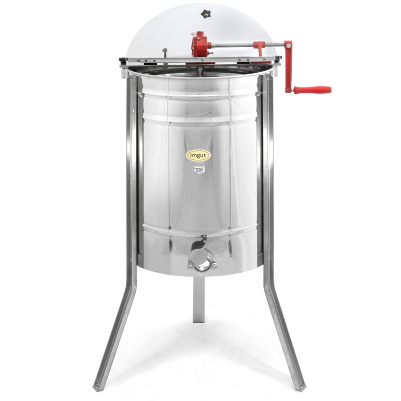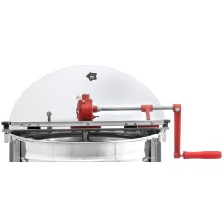 Tangentiell handvevad slunga, frihjulsväxel och broms. Utrustad med mittaxel och kullagrad korg. Passar 4 ramar upp till 245 mm höjd, exempelvis Lågnormal, Langstroth eller liknande.