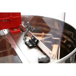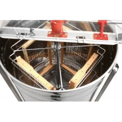 Manuell slunga med sidomonterad vev, frihjul och återbroms för kontrollerad slungning. Rymmer upp till 4 ramar med höjd upp till 295 mm – robust konstruktion för biodlare som föredrar enkel mekanik.