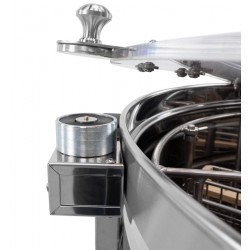 Kraftfull självvändande slunga för professionell honungshantering. Utrustad med motor, helautomatisk styrning och rostfri konstruktion av högsta kvalitet. Kapacitet för 8 vaxramar upp till 245 mm i höjd, t.ex. Normalmått, Langstroth eller andra vanliga format.