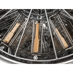 Professionell självvändande slunga för större biodlingar. Med kraftig motor, helautomatisk styrning och plats för 12 ramar upp till 245 mm höjd – exempelvis Normalmått eller Langstroth. Försedd med honungsledare mellan korgfickorna för optimal tömning.