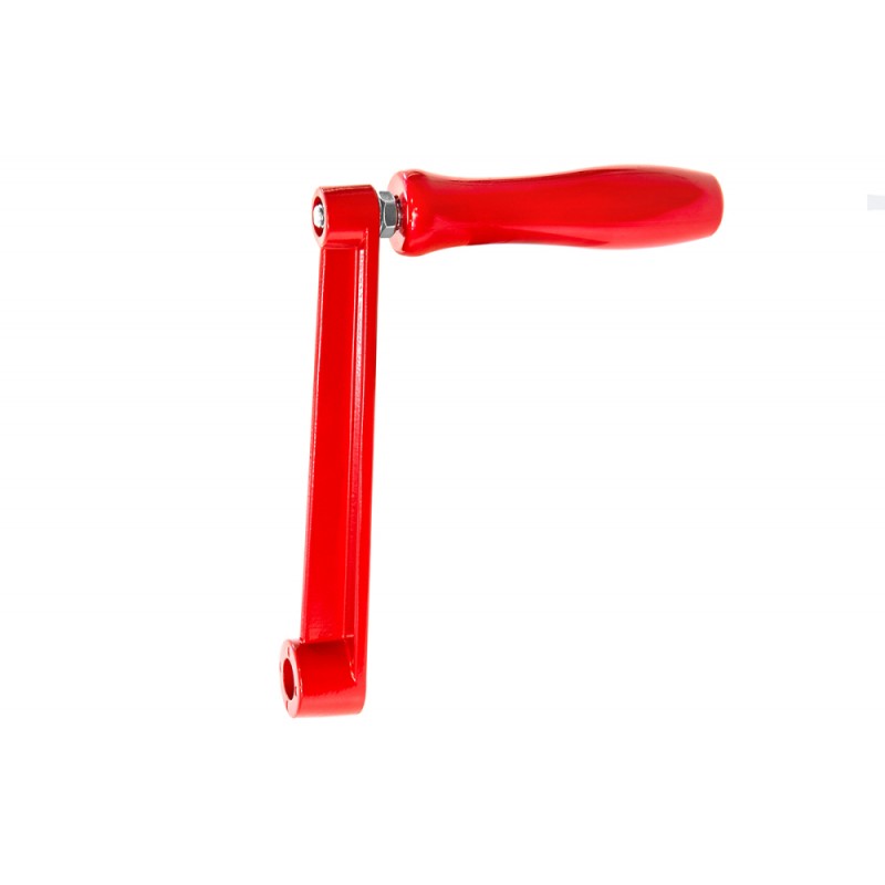 Komplett handvev bestående av vevarm i gjutgods, vridbart trähandtag och en M8 låsskruv. Passar handväxlar med 14 mm axel.
